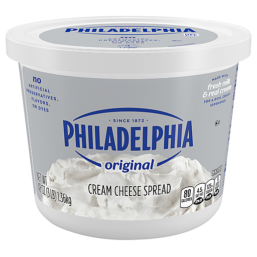Dive into immersive pleasure with Philadelphia Original Cream Cheese Spread. Made with real cream and fresh milk for an extra creamy, multi-dimensional taste you can add to any meal. At Philly, we leave out the artificial preservatives, flavors and dyes to ensure a rich, quality flavor. Our original cream cheese spread is easy to spread, making it the perfect choice for adding to your morning bagel, crafting sushi rolls or preparing pinwheel sandwiches. Keep our 48 ounce resealable container of cream cheese spread refrigerated. With Philadelphia Cream Cheese Spread, enjoy a rich, creamy experience you don't just taste, you feel.