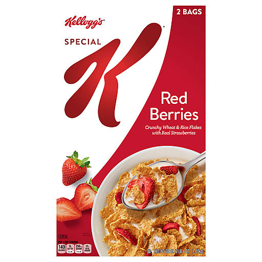 Start your day off right with the simple goodness of Kellogg's Special K Cereal Red Berries - a deliciously crafted, wholesome cereal that loves you back with each healthy spoonful. This filling cereal is made with pleasantly sweet wheat and rice flakes enhanced with pieces of delicious strawberries, to satisfy your taste buds and energize you for the day ahead. Just as nutritious as it is delicious, this breakfast cereal is made with whole grain and provides a good source of fiber along with 11 essential vitamins and minerals to help keep you going strong. Not just for breakfast - you can add some of this tasty cereal to your yogurt for a snack at the office, enjoy it straight from the box after your workout, or use it as the base for a homemade trail mix. However you choose to enjoy it, Kellogg's Special K Red Berries cereal helps you feed your strength with each irresistible bite.